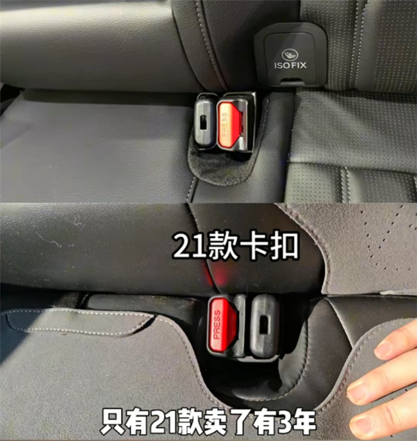 车主表示,即便买了这款车的人,也很难发现这个问题,自己也是开了三年多,因为父母来帮自己带孩子,经常坐后排中间的位置,让他们系安全带的时候才发现的。