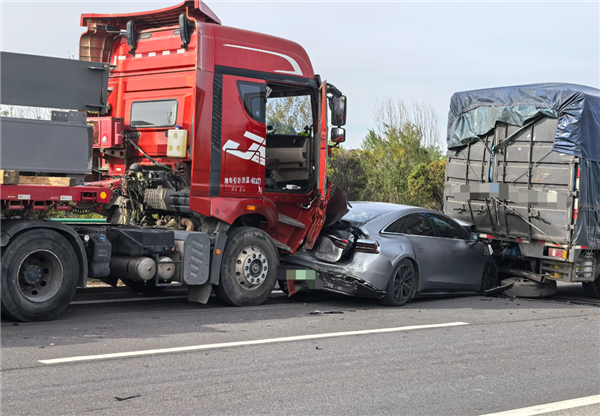 智界S7遭大货车欧义夹心撞 车主:人没事 已换新R7