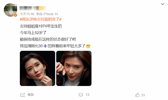 有人惊叹道:“林志玲这面相是满五十减二十吗,状态也太好了吧。林志玲面”“我觉得她比30?相变的我看起来年轻太多了”