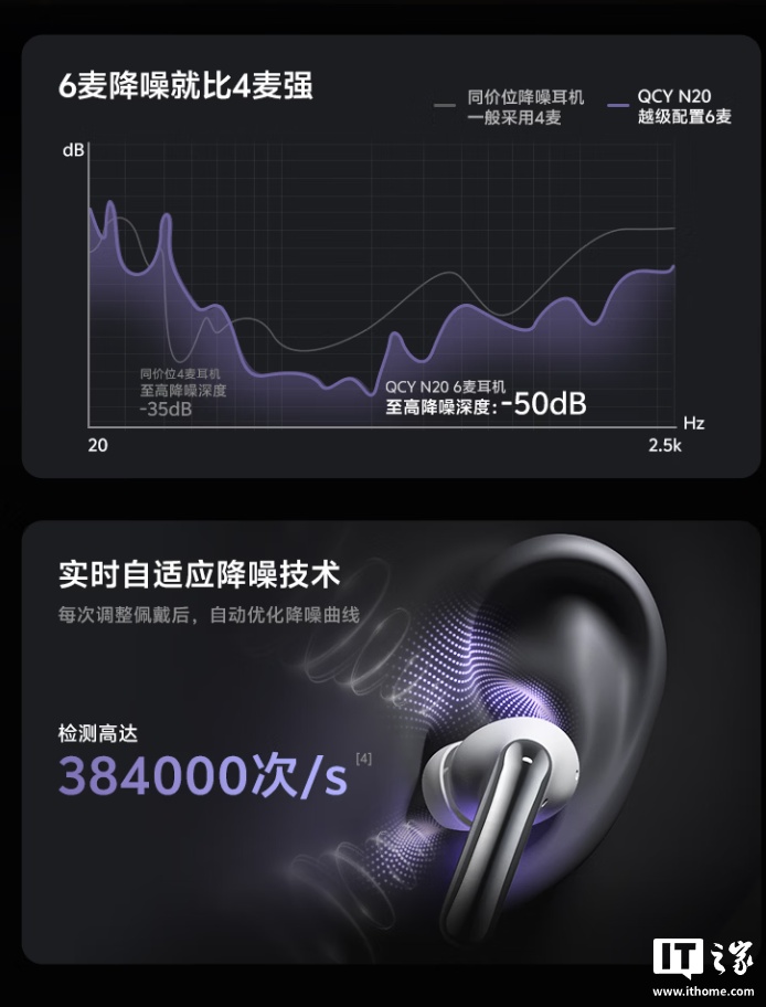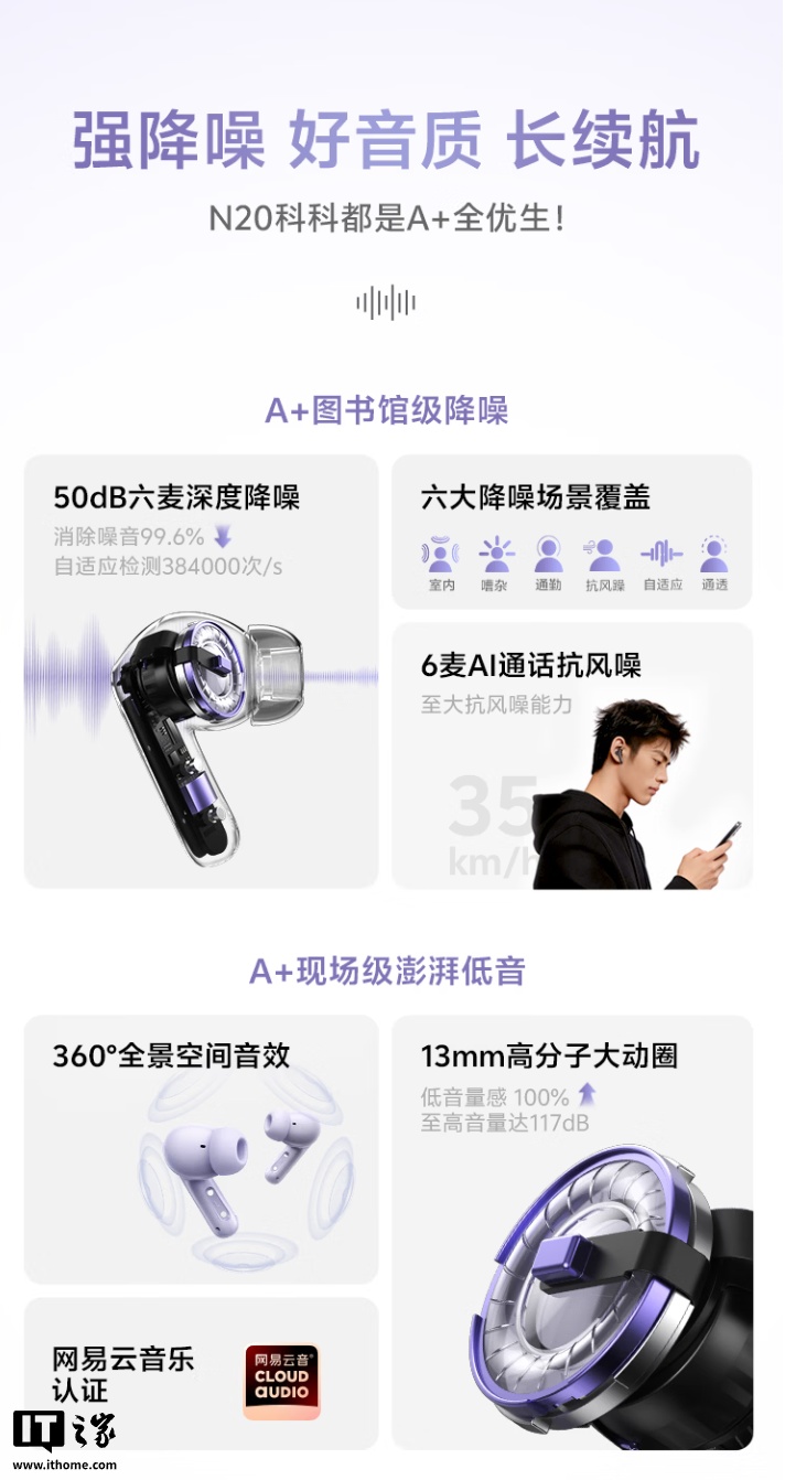 QCY N20 耳机开售:欧亿13mm 动圈单元、50dB 自适应降噪,129 元